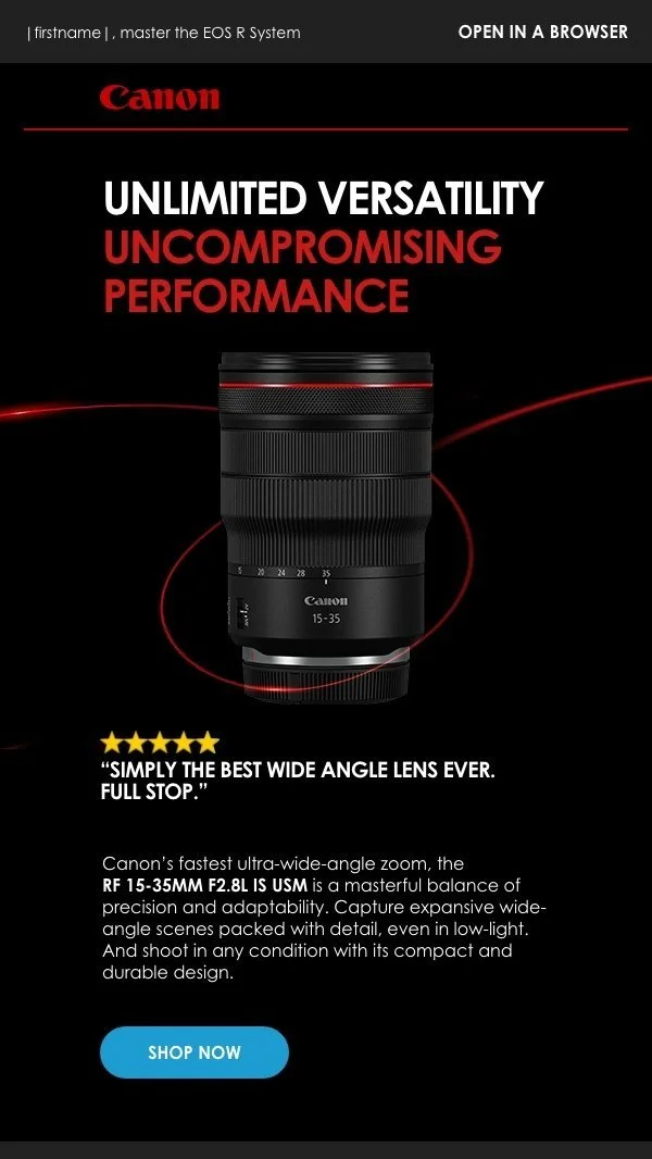 From 2022 - 2023, I was the primary copywriter for the Canon CRM account at VCCP, writing copy for brand campaigns, product launches, seasonal activations, and lifecycle triggers.